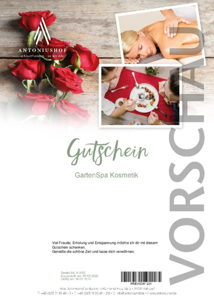 Unser GartenSpa im Hotel Antoniushof ist eine kleine Welt natürlicher Schönheit. Gemeinsam mit ihrem erfahrenen Team sorgt sich Miriam ums Verwöhnen, Verschönern, Zuhören und Wohlgefühl-Schenken. Der ideale Ort für erholsame Stunden. Erlesene Essenzen aus Johanniskraut und schwarzem Sesam machen Ihre Haut wunderbar weich, Lorbeer und Zitronenöl entfalten ihre belebende Wirkung. Elsbeeren, Artischocke und Cranberries betören die Sinne. Die Natur ist voller Schätze.